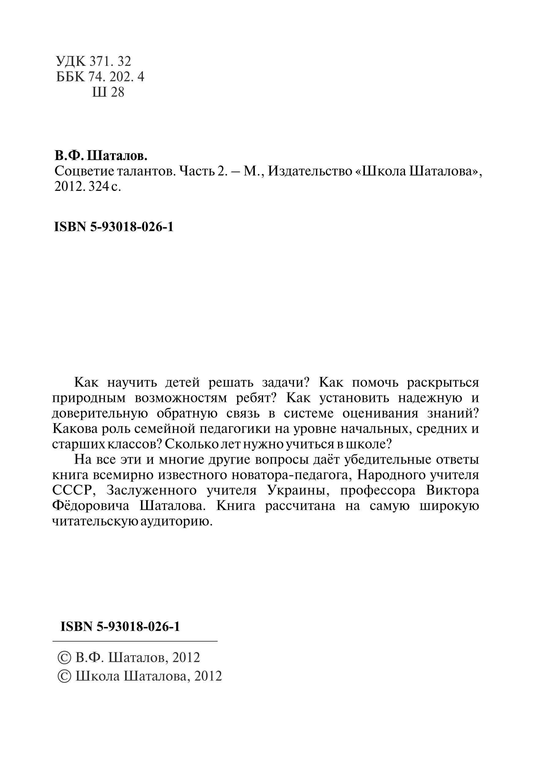 1. Соцветие талантов. Книга 1 и 2. Шаталов В.Ф., Народный учитель СССР. (Вся методика В. Шаталова в двух книгах)